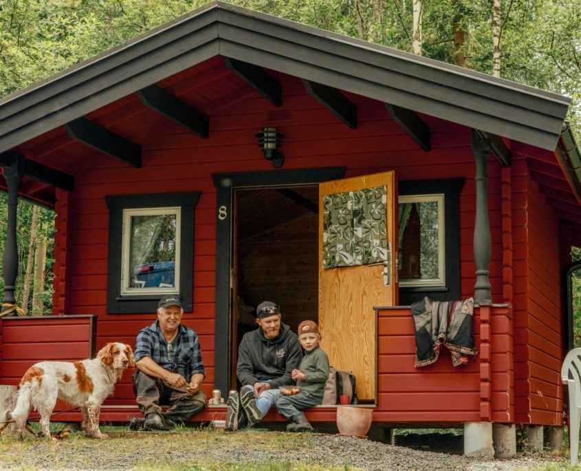 Vi har åtta hemtrevliga stugor, de flesta är fullt utrustade med kök, dusch och toalett. De ligger utplacerade i de natursköna områdena, nästan alla med utsikt över sjön. Servicehuset har självklart kök, disk, dusch och toalett. Alla stugorna är rökfria och husdjur är välkomna (från 2 hundar efter överenskommelse). Under högsäsongen max. 2 hundar per stuga.